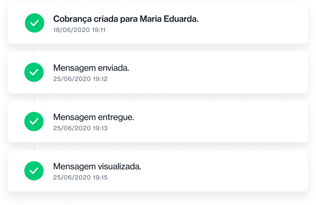 Você consegue conferir se a fatura foi enviada para o cliente e se ele abriu o e-mail e recebeu notificação via SMS.
